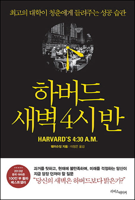 하버드 새벽 4시반이라는 책을 읽었습니다. 우리에게 하버드란 세계 수재들이 모인 곳이며, 그들은 우리와 다른 타고난 존재로 인식하기 마련입니다. 하지만 그들은 자신들의 Value를 끊임없이 높이기 위해 하루를 새벽 4시 반에 도서관에서 시작한다고 합니다. 그렇게 노력한 그들이 우리보다 가치를 인정받고, 더 높은 연봉을 받는 것이 당연한 것이며 그것이 공정한 사회 아닐까요? 지금도 늦지 않았습니다. 우리도 스스로의 가치를 높이기 위해 부지런히 노력하며 포기하지 않는다면 언젠가는 그 보답을 받을 날이 올 겁니다. 지금 당신의 새벽은 하버드보다 밝은가요?